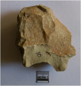 | Description / विवरण | The chert flake has flake scars as a result of flaking. The edges are retouched and median ridge is visible du to flaking. |
