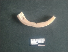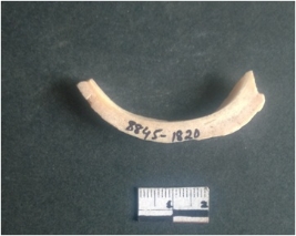 | Description / विवरण | This is a fragment of an unfinished shell circlet. It is an unfinished bangle fragment. It is white in color with polished inner surface and grounded outer surface. Rectangular in cross section. |