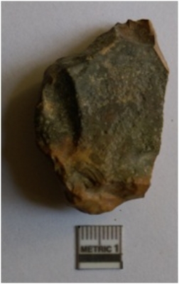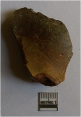 | Description / विवरण | The chert flake has a positive bulb of percussion and sharp edges with a backed end. The piece has tapering edges and pointed end as a result of flaking. |