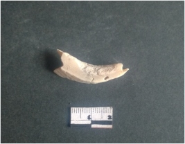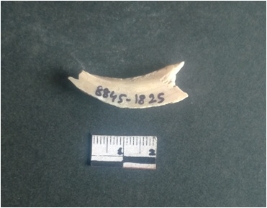 | Description / विवरण | This is a fragment of an unfinished shell circlet. It is an unfinished bangle fragment. It is white in color with polished inner surface and grounded outer surface. Rectangular in cross section. |