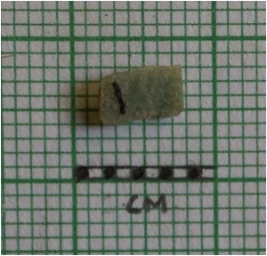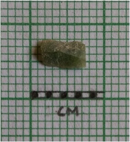 | Description / विवरण | Small fragment, with angular edges and flake sides. Roughly rectangular in shape. |