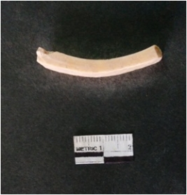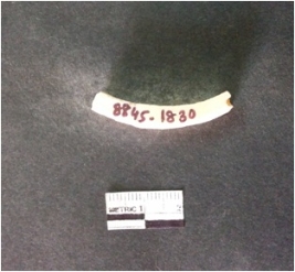 | Description / विवरण | This is a fragment of an unfinished shell circlet. It is an unfinished bangle fragment. It is white in color with polished inner surface and grounded outer surface. Rectangular in cross section. |