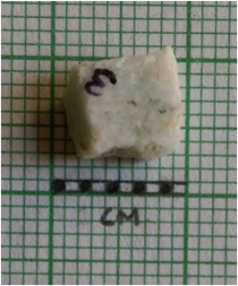 | Description / विवरण | Small fragment, with angular edges and flake sides. Roughly rectangular in shape. |