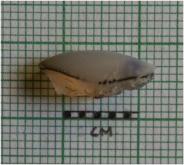 | Description / विवरण | Elongated flake with a prominent bulb of percussion. One end has a sharp point with tapering edges. |