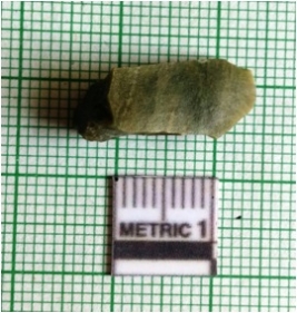 | Description / विवरण | The jasper flake has a bulb of percussion and sharp tapering edges with flat section. The color is green, and the flake is crypto - crystalline in nature. |