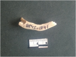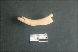 | Description / विवरण | This is a fragment of an unfinished shell circlet. It is an unfinished bangle fragment. It is white in color with polished inner surface and grounded outer surface. Rectangular in cross section. |