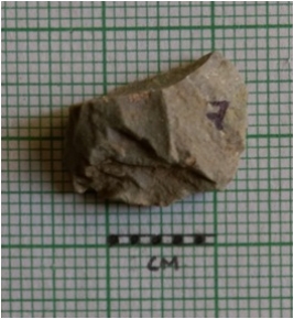 | Description / विवरण | Flake scars on the surface of the piece. No evident bulb of percussion. Sharp edges as a result of flaking. |