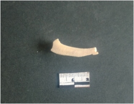 | Description / विवरण | This is a fragment of an unfinished shell circlet. It is an unfinished bangle fragment. It is white in color with polished inner surface and grounded outer surface. Rectangular in cross section. |