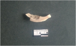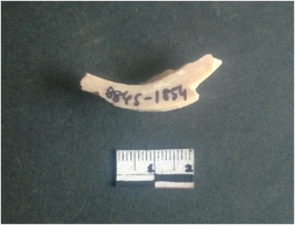 | Description / विवरण | This is a fragment of an unfinished shell circlet. It is an unfinished bangle fragment. It is white in color with polished inner surface and grounded outer surface. Rectangular in cross section. |