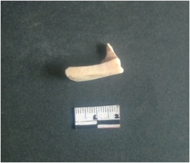 | Description / विवरण | This is a fragment of an unfinished shell circlet. It is an unfinished bangle fragment. It is white in color with polished inner surface and grounded outer surface. Rectangular in cross section. |