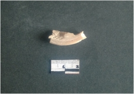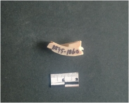 | Description / विवरण | This is a fragment of an unfinished shell circlet. It is an unfinished bangle fragment. It is white in color with polished inner surface and grounded outer surface. Rectangular in cross section. |