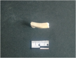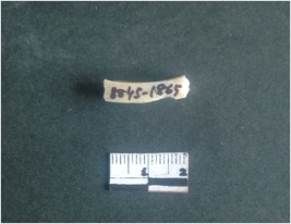 | Description / विवरण | This is a fragment of an unfinished shell circlet. It is an unfinished bangle fragment. It is white in color with polished inner surface and grounded outer surface. Rectangular in cross section. |