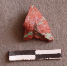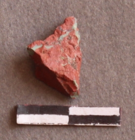 | Description / विवरण | It is a Jasper fragment. Sharp edges and pointed ends. Flake ridges on the surface. |