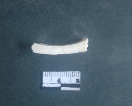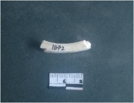 | Description / विवरण | This is a fragment of an unfinished shell circlet. It is an unfinished bangle fragment. It is white in color with polished inner surface and grounded outer surface. Rectangular in cross section. |