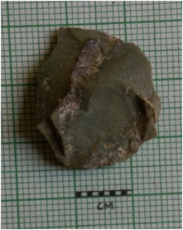 | Description / विवरण | The chert flakes has negative bulb of percussion and flake scars. The piece has a median ridges as a result of flaking. |