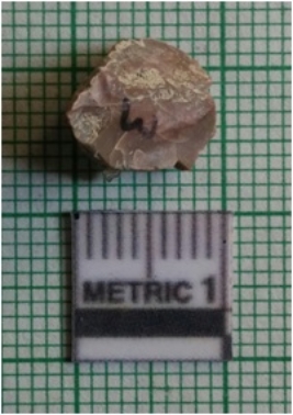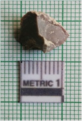 | Description / विवरण | The flat crypto - crystalline flake has flaked sides and a shallow positive bulb of percussion with sharp pointed ends. The flake has some cortex preserved on the ventral side. |