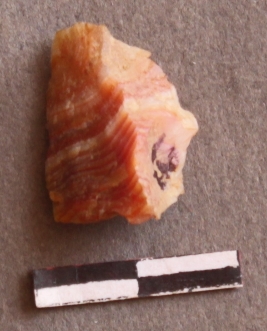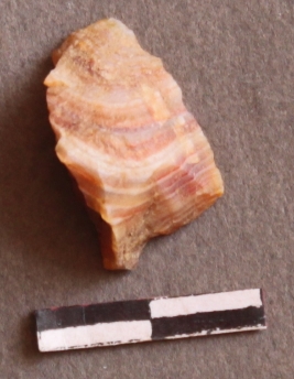 | Description / विवरण | It is a banded agate nodule. Striking platform on the proximal end. Flake scars on the surface. |