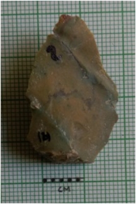 | Description / विवरण | The chert flakes has negative bulb of percussion and flake scars. The piece has a median ridges as a result of flaking. |