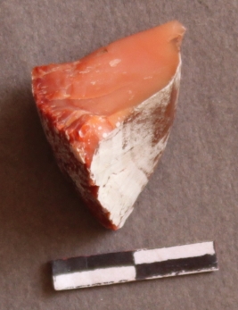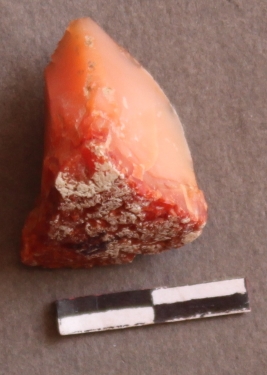 | Description / विवरण | It is a Carnelian nodule. Cortex on one end of the fragment. With flake scars on the surface. |