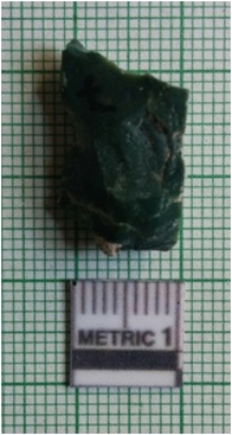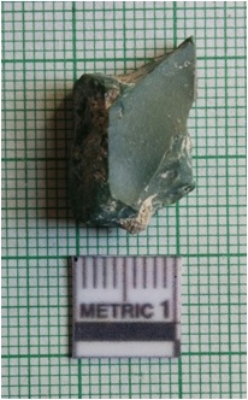 | Description / विवरण | The flat crypto - crystalline flake has flaked sides and a shallow positive bulb of percussion with sharp pointed ends. The flake has some cortex preserved on the ventral side. |