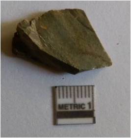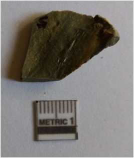 | Description / विवरण | Quadrangular flake with squarish section and cut edges due to flaking. The piece has a negative bulb of percussion and ripple marks. |