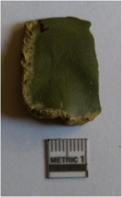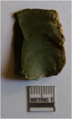 | Description / विवरण | Quadrangular flake with squarish section and cut edges due to flaking. The piece has a negative bulb of percussion and ripple marks. |