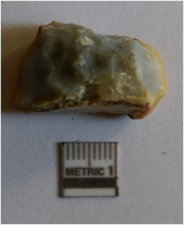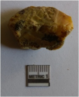 | Description / विवरण | The quartz chunk has yellow colored cortex. The flaked part has negative bulb of percussion. |