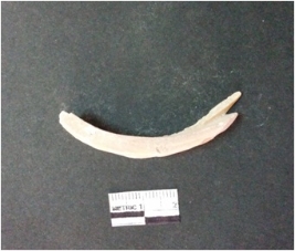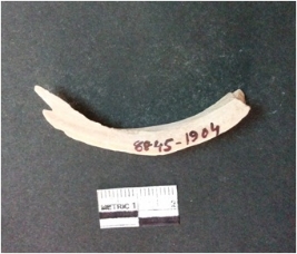 | Description / विवरण | This is a fragment of an unfinished shell circlet. It is an unfinished bangle fragment. It is white in color with polished inner surface and grounded outer surface. Rectangular in cross section. |