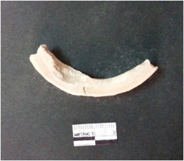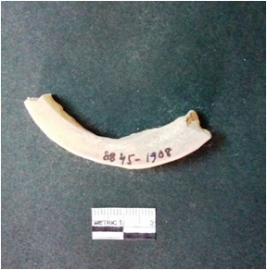 | Description / विवरण | This is a fragment of an unfinished shell circlet. It is an unfinished bangle fragment. It is white in color with polished inner surface and grounded outer surface. Rectangular in cross section. |
