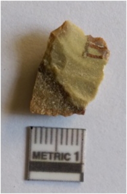 | Description / विवरण | The rectangular flake has pointed edges and cut edges due to flaking. The flake has a positive bulb of percussion. |