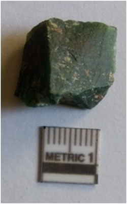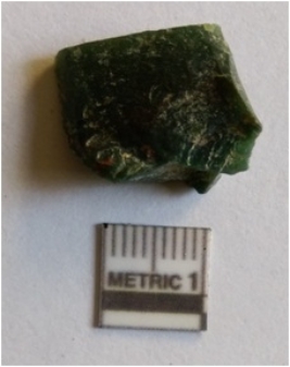 | Description / विवरण | The chert flake is quadrangular in shape, with median ridge as a result of flaking. The piece has angular edges and pointed end. |