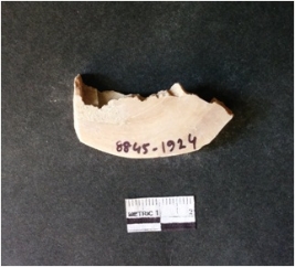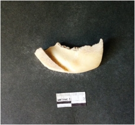 | Description / विवरण | This is a fragment of an unfinished shell circlet. It is an unfinished bangle fragment. It is white in color with polished inner surface and grounded outer surface. Rectangular in cross section. |