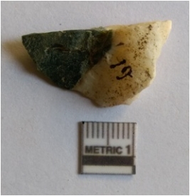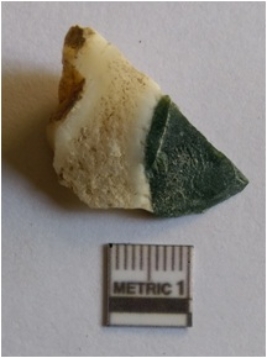 | Description / विवरण | The flake has sharp flaked edges and surfical flake scars as a result of flaking. The piece has squarish sides due to breakage. Two ends are rounded due to rolling grinding. |