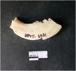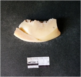 | Description / विवरण | This is a fragment of an unfinished shell circlet. It is an unfinished bangle fragment. It is white in color with polished inner surface and grounded outer surface. Rectangular in cross section. |