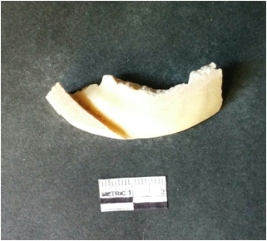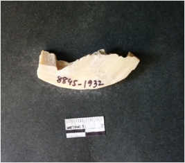 | Description / विवरण | This is a fragment of an unfinished shell circlet. It is an unfinished bangle fragment. It is white in color with polished inner surface and grounded outer surface. Rectangular in cross section. |