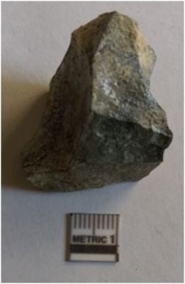 | Description / विवरण | The chert flake has characteristic flaking, with sharp edges and pointed ends. The bulbous end is clear indication of flake detachment and flat section as a result of flaking. |