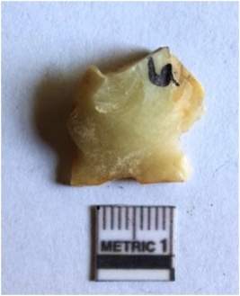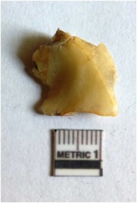 | Description / विवरण | The quartz piece has backing edge and angular edges with flaked sides. The piece has a shallow bulb of percussion. |