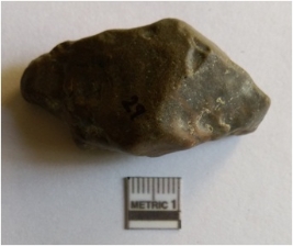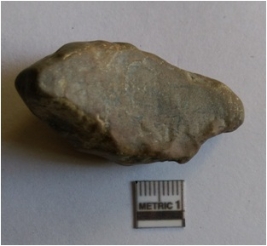 | Description / विवरण | The piece is ground and has rolled edges. Remnants of negative flake scars are visible on the surface, with tapered end. |