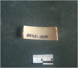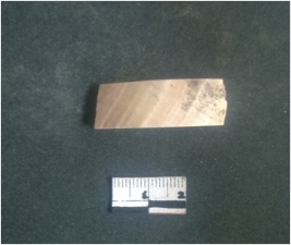 | Description / विवरण | This is a fragment of an unfinished shell circlet. It is an unfinished bangle fragment. It is white in color with polished inner surface and grounded outer surface. Rectangular in cross section. |