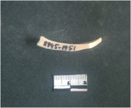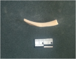 | Description / विवरण | This is a fragment of an unfinished shell circlet. It is an unfinished bangle fragment. It is white in color with polished inner surface and grounded outer surface. Rectangular in cross section. |
