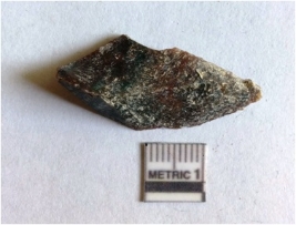 | Description / विवरण | The chert flake has angular edges negative bulb of percussion and sharp points due to flaking. The flake has characteristic squarish shape and flaked rides. The crypto - crystalline flake has regular flaking on the surface and a striking platform. |