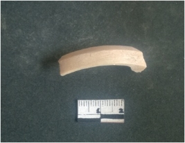 | Description / विवरण | This is a fragment of an unfinished shell circlet. It is an unfinished bangle fragment. It is white in color with polished inner surface and grounded outer surface. Rectangular in cross section. |
