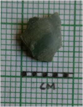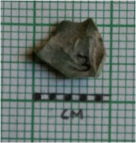 | Description / विवरण | Flat chert flake has pointed end and some ripple marks visible on the surface. |