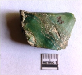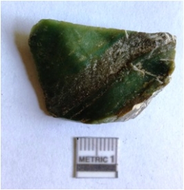 | Description / विवरण | The chert flake has angular edges negative bulb of percussion and sharp points due to flaking. The flake has characteristic squarish shape and flaked rides. The crypto - crystalline flake has regular flaking on the surface and a striking platform. |