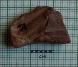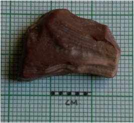 | Description / विवरण | The flake has a bulb of percussion with a backed end. The piece has some flake scars on the surface. The cryptocrystalline material has enabled smooth edged fractures and flaking of the piece. It is a part of secondary flaking activity of lithic knapping. |