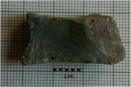 | Description / विवरण | The roughly rectangular flake has angular edges and flake scars as a result of flaking. |