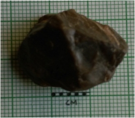 | Description / विवरण | Flaked piece, with ridges and flaked ends. Rounded piece as a result of prolonged deposition. |