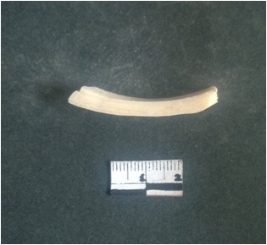 | Description / विवरण | This is a fragment of an unfinished shell circlet. It is an unfinished bangle fragment. It is white in color with polished inner surface and grounded outer surface. Rectangular in cross section. |