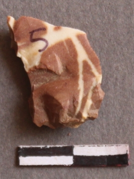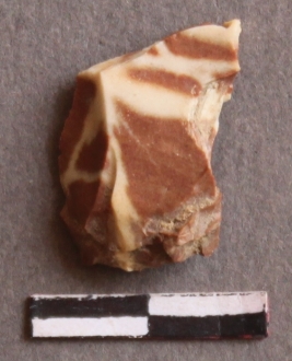 | Description / विवरण | The jasper fragment has angular edges with pointed ends and slanting sides. |