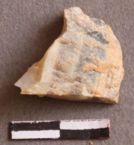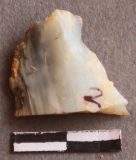 | Description / विवरण | It is a banded agate fragment, partly covered with cortex, flake scars on the surface. |